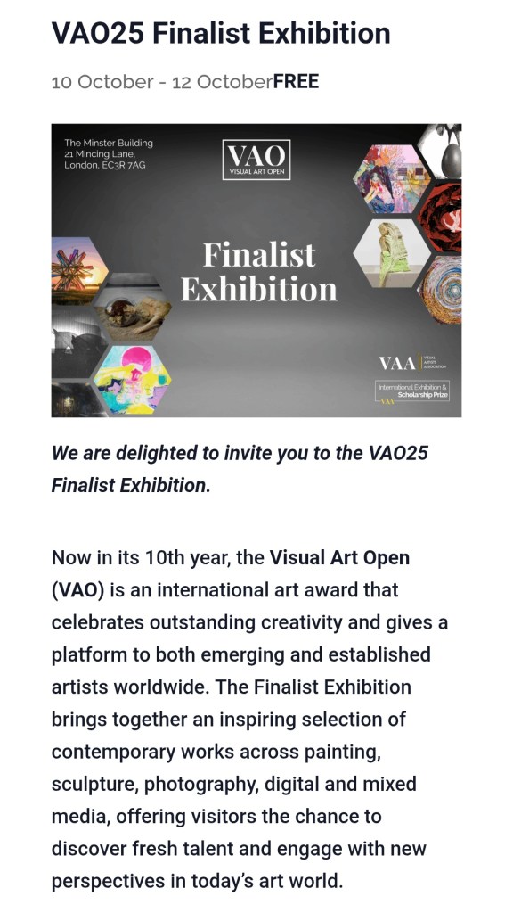 Excited to be exhibiting The Red Bags at The Minster, London EC3, this October.The VISUAL ARTS OPEN 2025 Finalists Exhibition 2025 9 Oct-12 October There will be some interesting artist talks happening over the weekend which I shall look forward to attending. Wishing all participants the very best. Look forward to seeing you there!