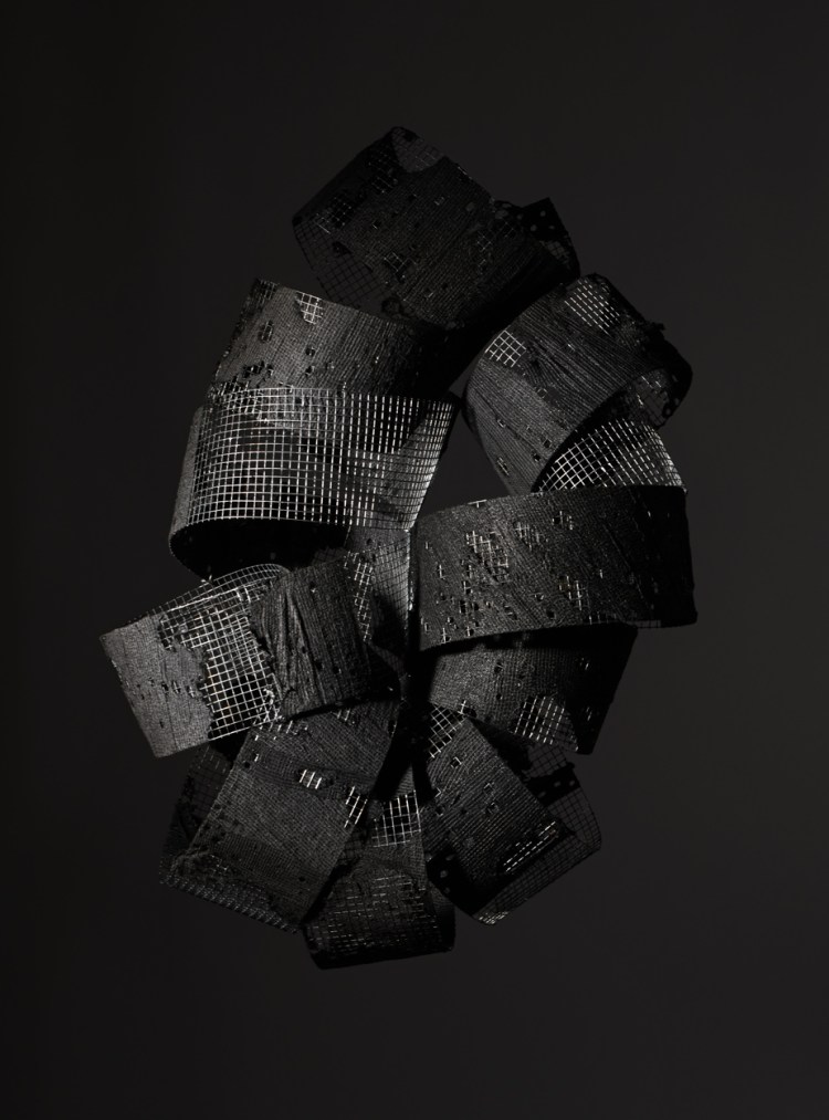 – Sculptural Drawing Installation at Gracefield Arts Centre Dumfries May 25-27 MAY / Recycled materials, Galvanised steel mesh, bullet holes, fire. /Size Variable/