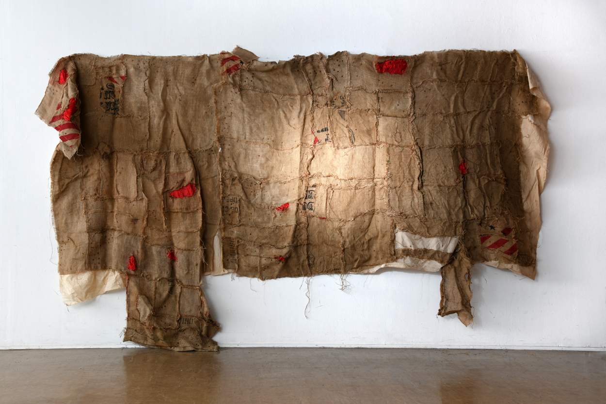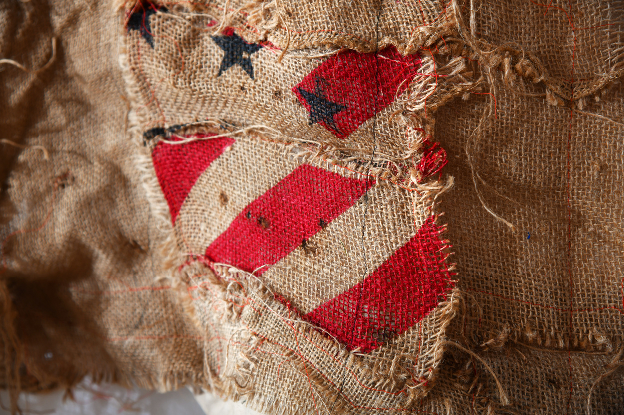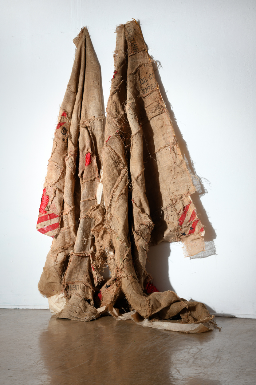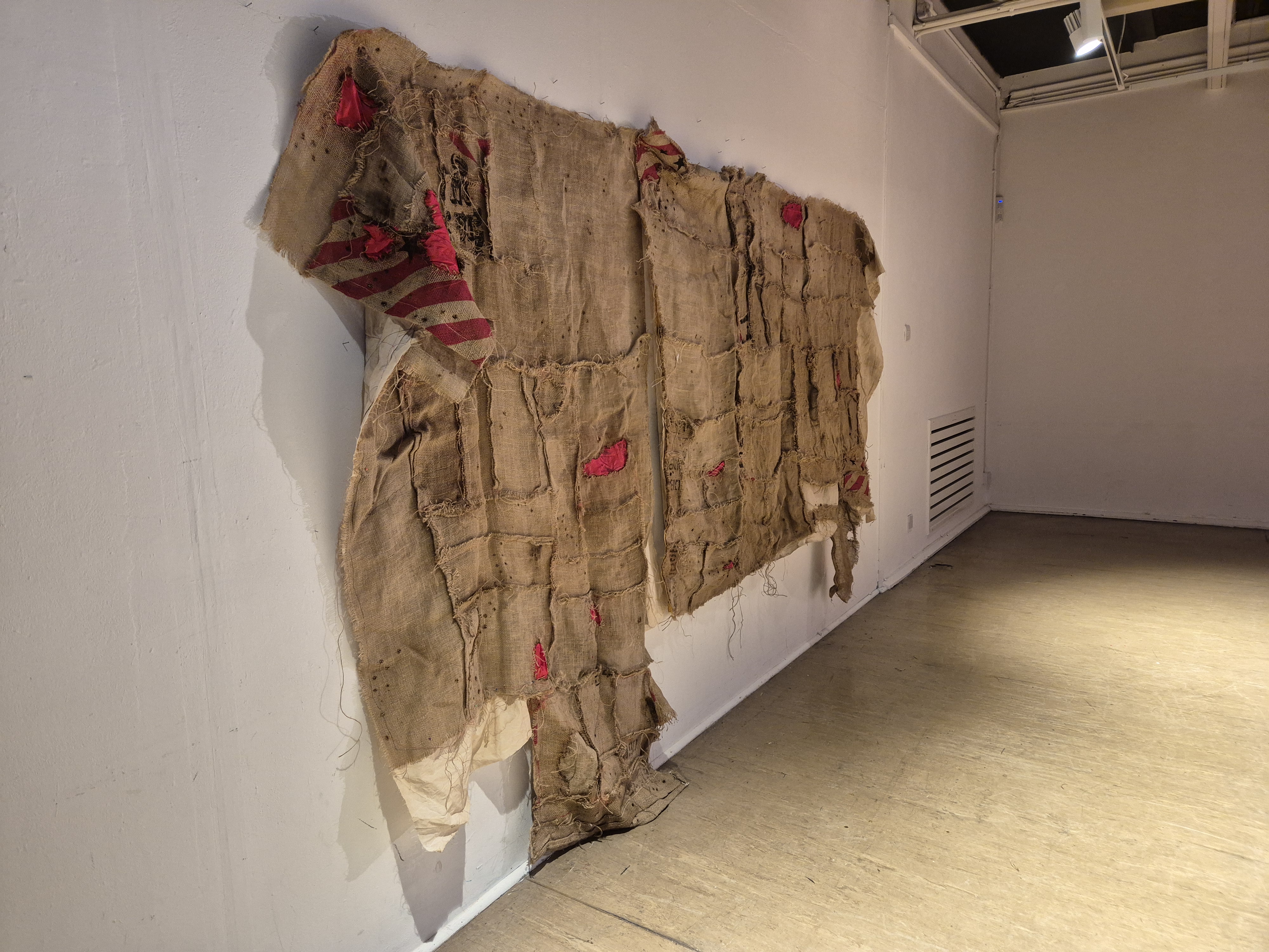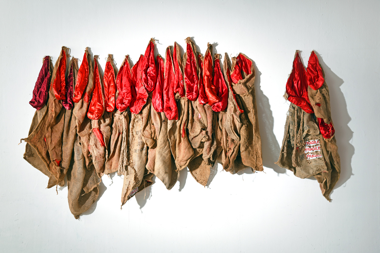 Hessian sacks / Red Satin/ Fragile Labels / Bullet holes