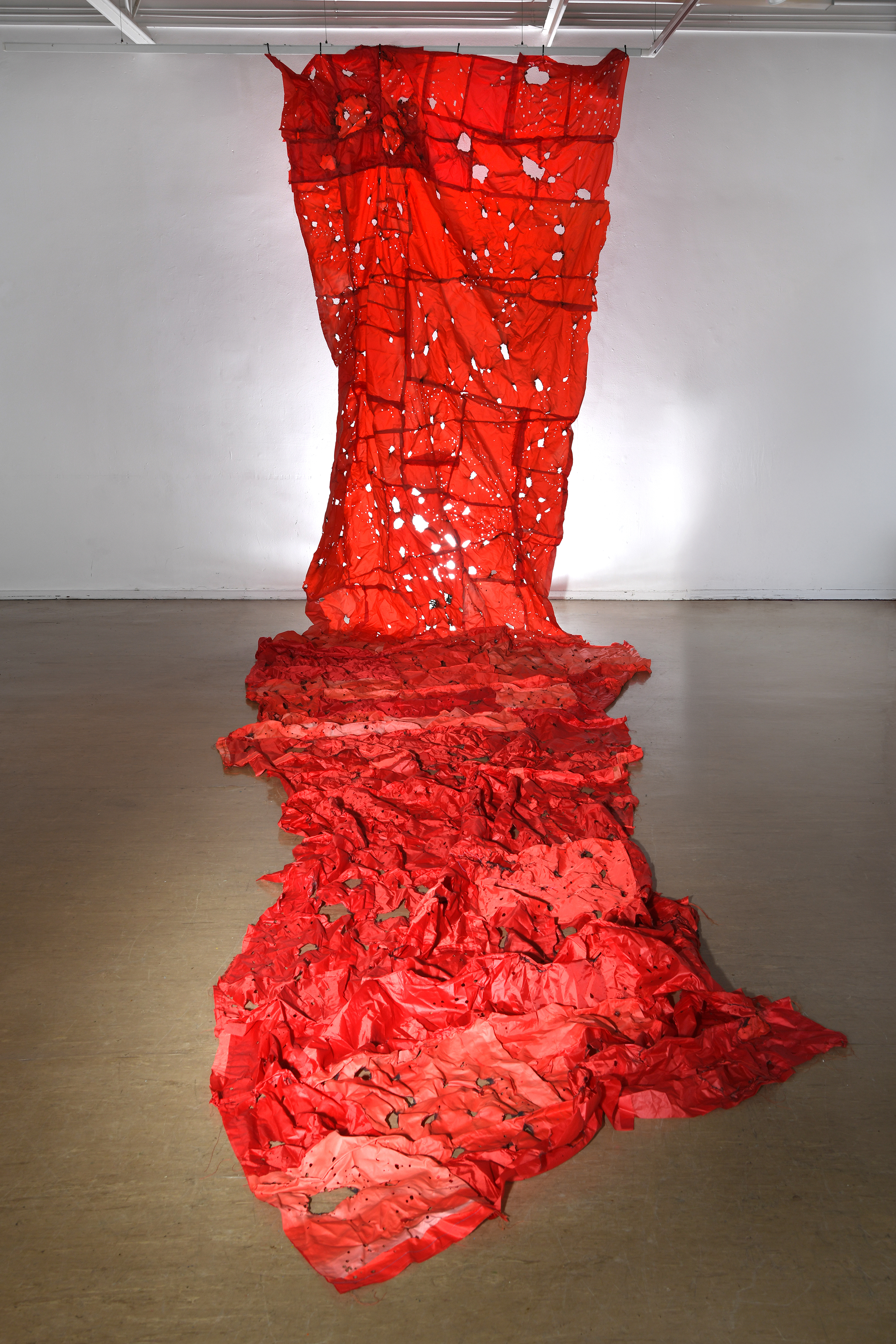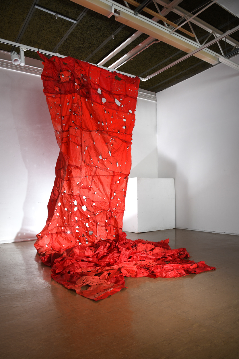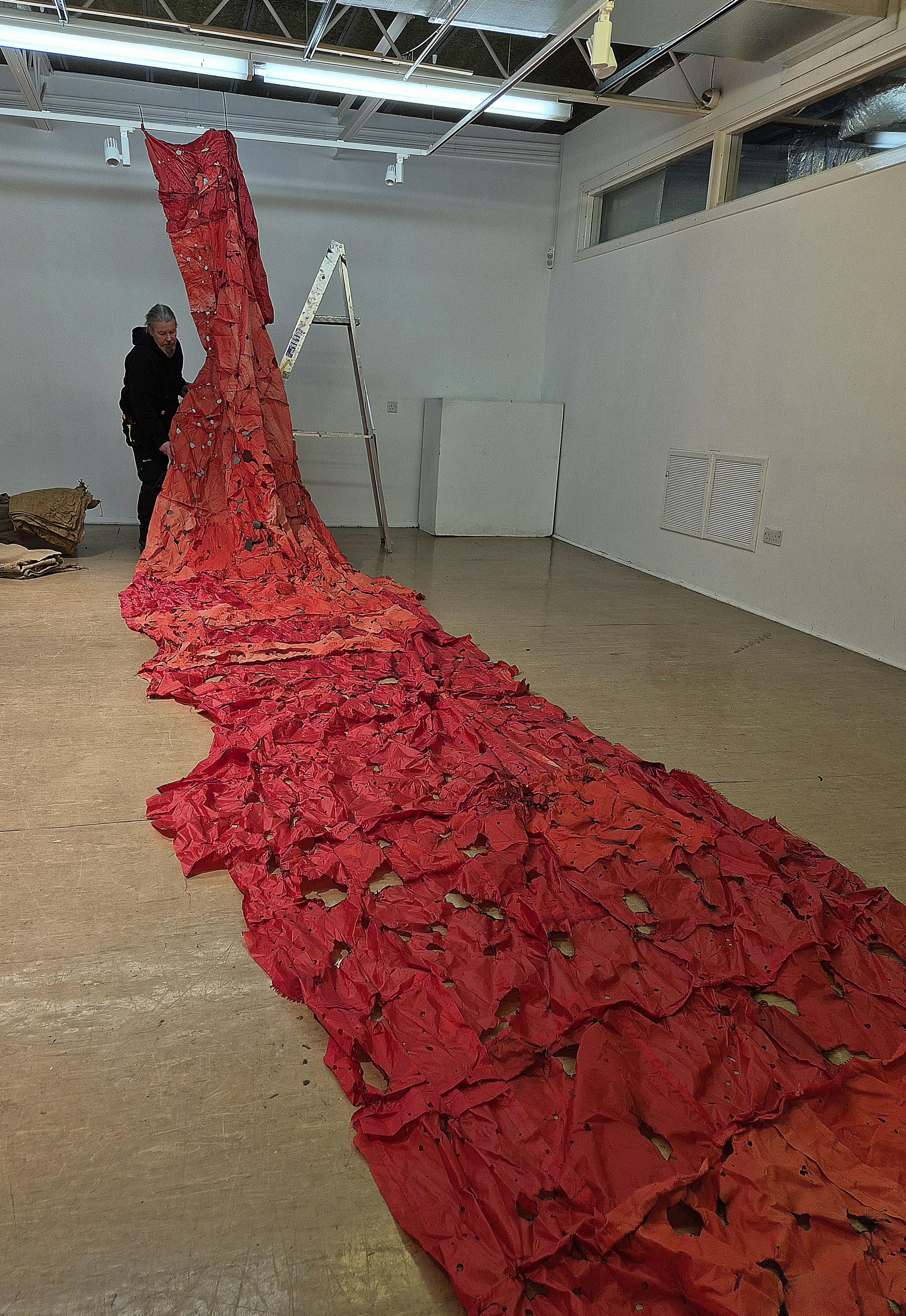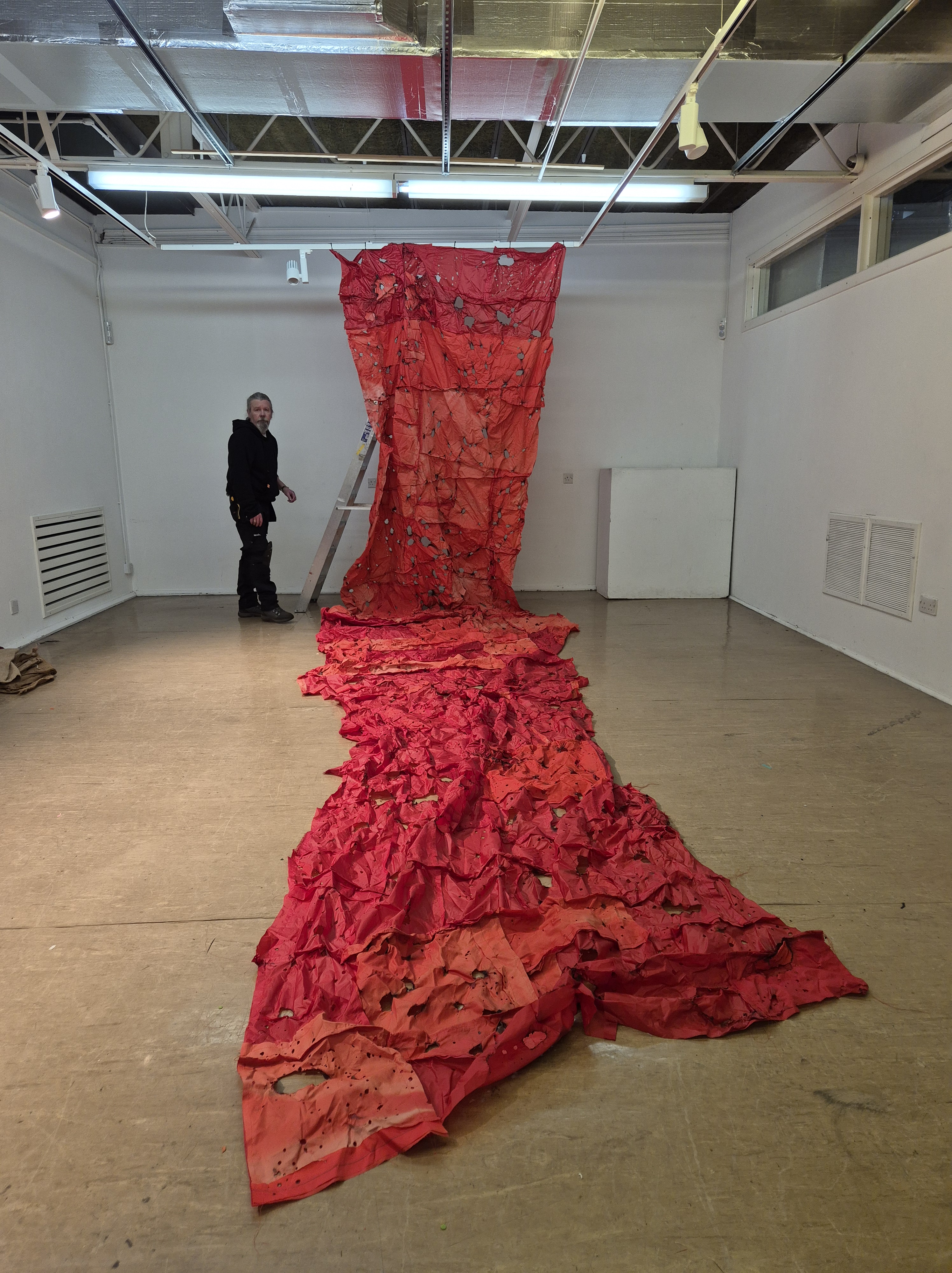 After being on the road for two years, I now have all The Red Bags back home. First Installed in the grounds of Gracefield Arts Centre, Scotland 2022 for four months, they were then reimagined for an interior space at the OXO Tower, Southbank London. 2023 saw them shortlisted for the Aesthetica Art Prize where they were once again Installed outdoors in the grounds of York Art Gallery-England.
