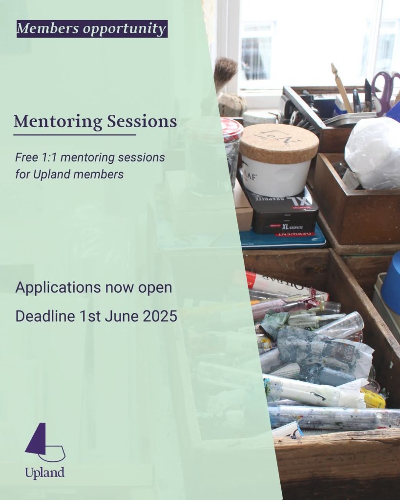 As part of our professional development programme we are offering free mentoring sessions. These will be 1:1 sessions for Upland Members, allowing artists and makers to gain support and advice through a focused session with a fellow artist/maker who has suitable experience.
